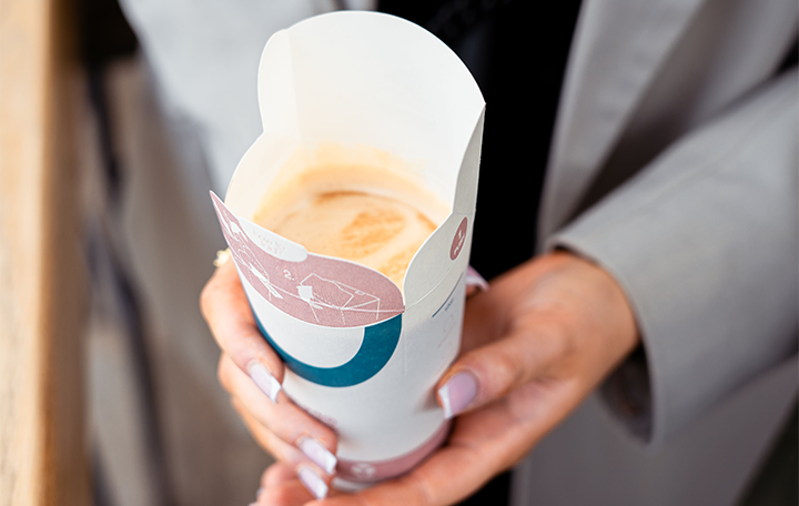 Today, The Good Cup cups are amenable to the same deco processes as standard paper cups and can be produced on the same machines that manufacture traditional paper cups. Drouet notes that although The Good Cup is a premium product at a standard price, it’s cheaper than the combined cost of a paper cup and plastic lid. “Because no plastic lids are required, switching to The Good Cup translates into a 40% reduction on storage space, transportation volume and carbon footprint,” he says.